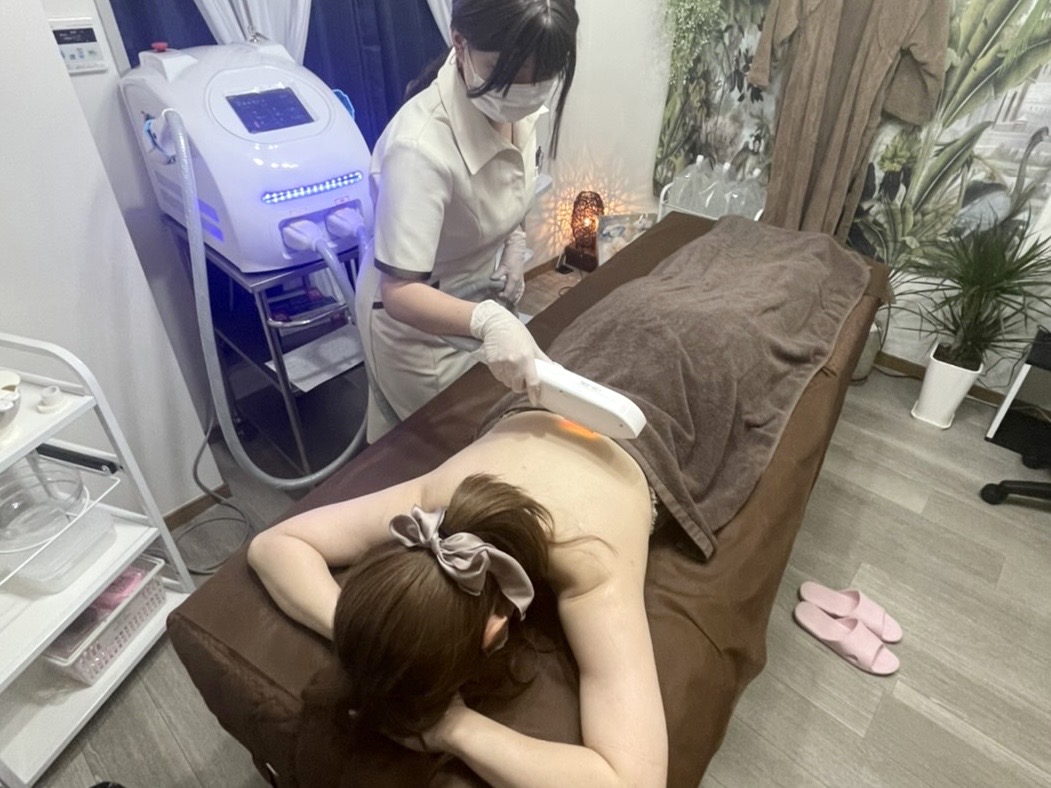 当店のスタッフは、脱毛器の照射する範囲を的確に把握し、お客様の肌タイプを見極めて脱毛器の照射レベルを適切に設定するなど、高い技術力を身に付けている 。